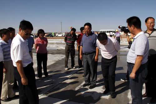 8月21日,由喬新山局長率領(lǐng)的民航西北管理局工作檢查組一行蒞臨金昌機(jī)場(chǎng)飛行區(qū)施工現(xiàn)場(chǎng)檢查指導(dǎo)工作。在飛行區(qū)停機(jī)坪建設(shè)工地,在了解到公司金昌機(jī)場(chǎng)項(xiàng)目部?jī)H用了二十五個(gè)晝夜完成了總面積2.65萬平方米停機(jī)坪道面工程的情況后,對(duì)大家的辛勤勞動(dòng)給予了充分肯定,并鼓勵(lì)廣大建設(shè)者繼續(xù)鼓足干勁、克服困難,發(fā)揚(yáng)求真務(wù)實(shí)、艱苦奮斗的作風(fēng),確保工程按期完工。