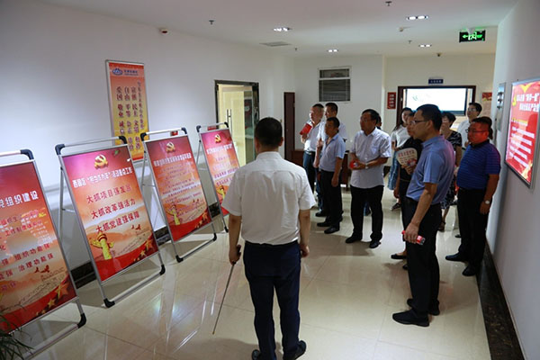 觀摩組在公司黨委書記祁明海的陪同講解下,先后察看了公司的黨建特色活動、黨群活動中心建設及黨建內業資料等,對公司的黨建工作給予了充分的肯定。