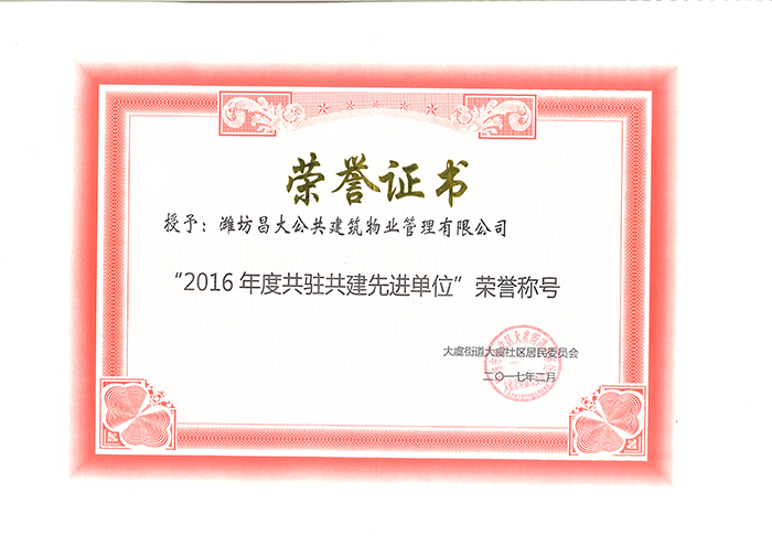 2016年度奎文區共駐共建先進單位